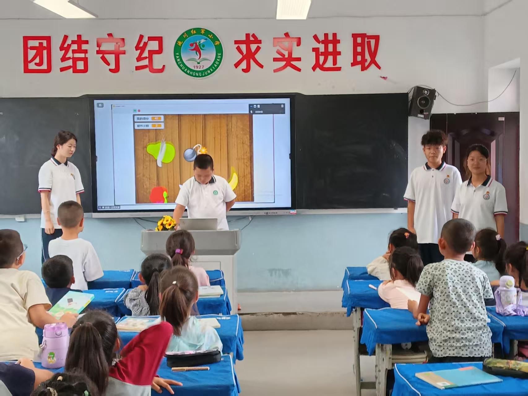 活动当天,永坪红军小学的教室里充满了孩子们的欢声笑语。实践团成员通过图形化编程工具,带领孩子们进入了神奇的编程世界。