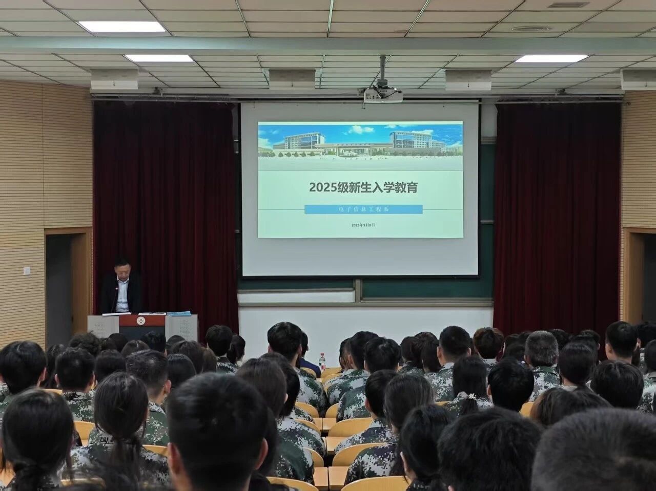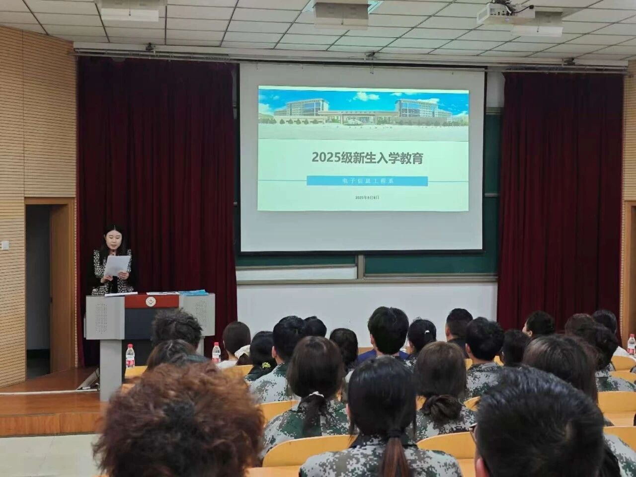 从新生报到之日起,我系根据学校 2025 级新生军训及入学教育工作实施方案统一安排,集中对学生进行入学教育,同时围绕“关爱新生、服务新生、引导新生”的主题,结合我系实际,安排辅导员、专业老师,利用晚自习、班会等时间对新生进行常规入学教育。