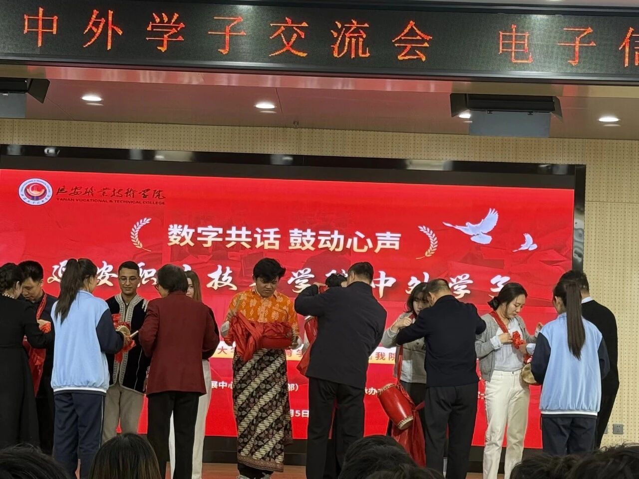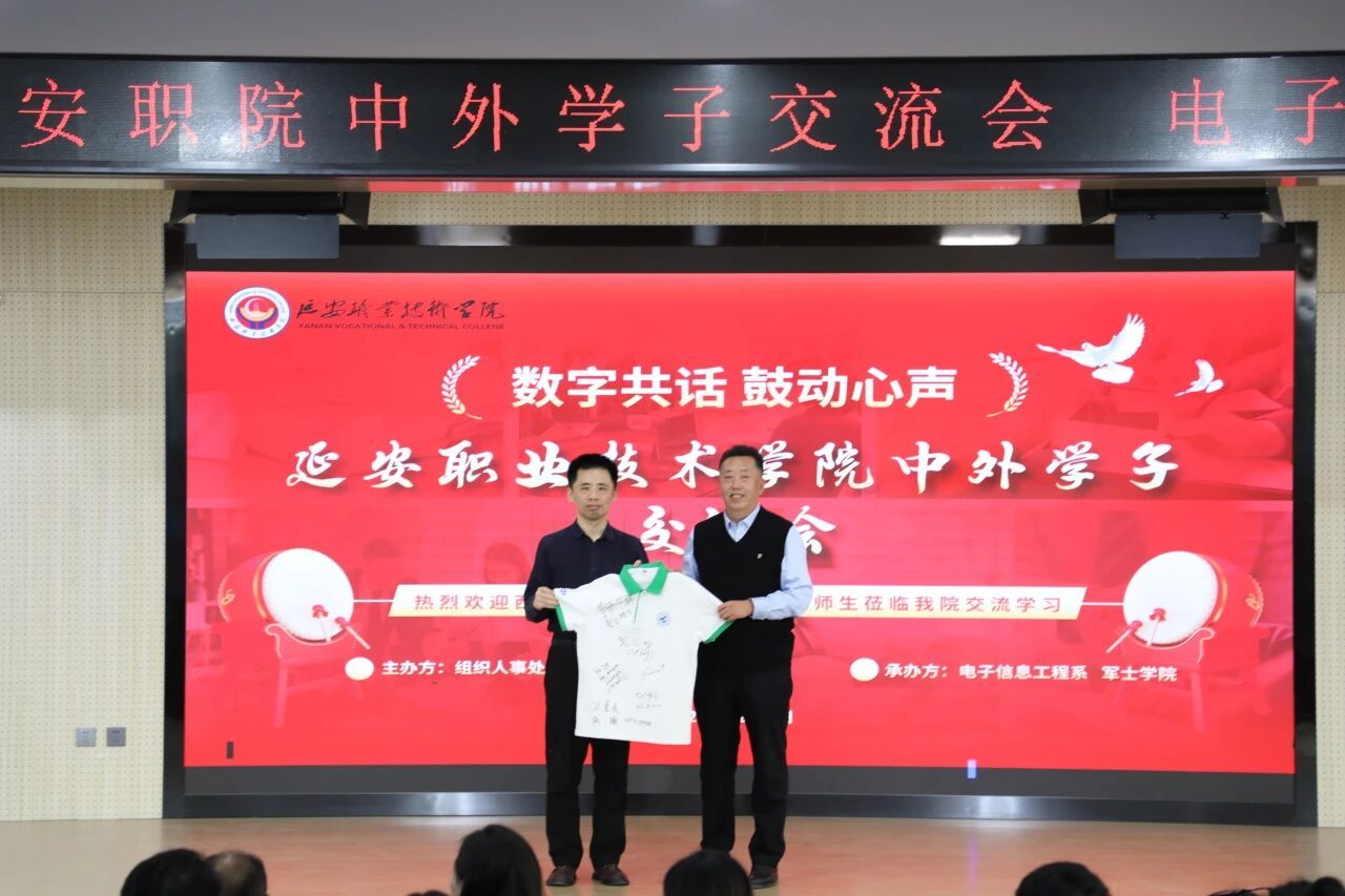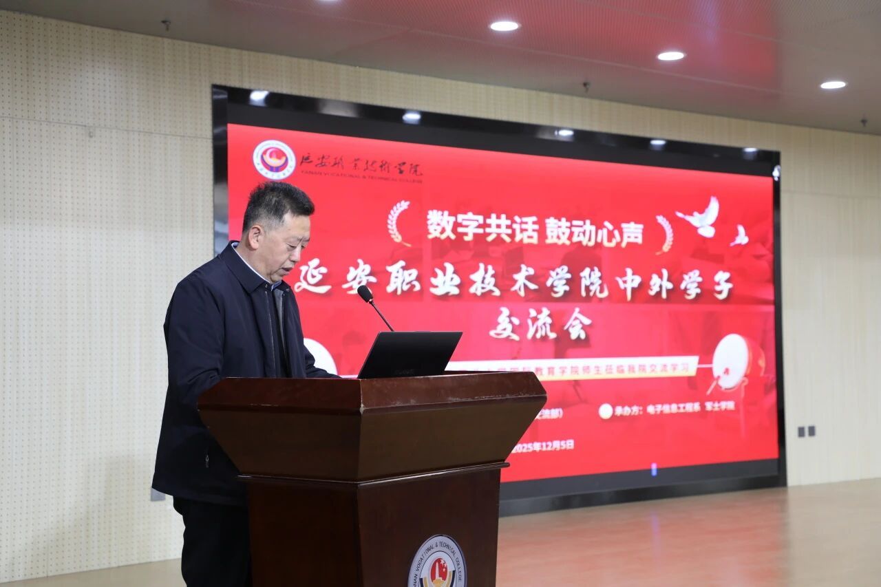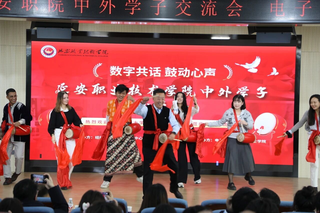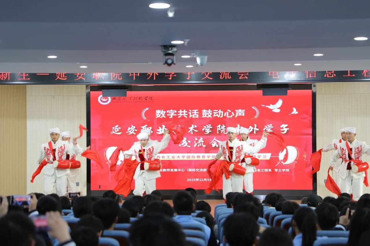 2025年12月5日上午10:30,第二阶梯教室洋溢着跨越国界的热情与欢笑。由学院组织人事处教师发展中心(国际交流部)主办、电子信息工程系与军士学院承办的 “数字共话 鼓动心声——延安职业技术学院中外学子交流会” 在这里隆重举行。西北工业大学国际教育学院师生代表与我院师生代表齐聚一堂,在冬日的暖阳中共话教育、共享文化、共筑友谊。