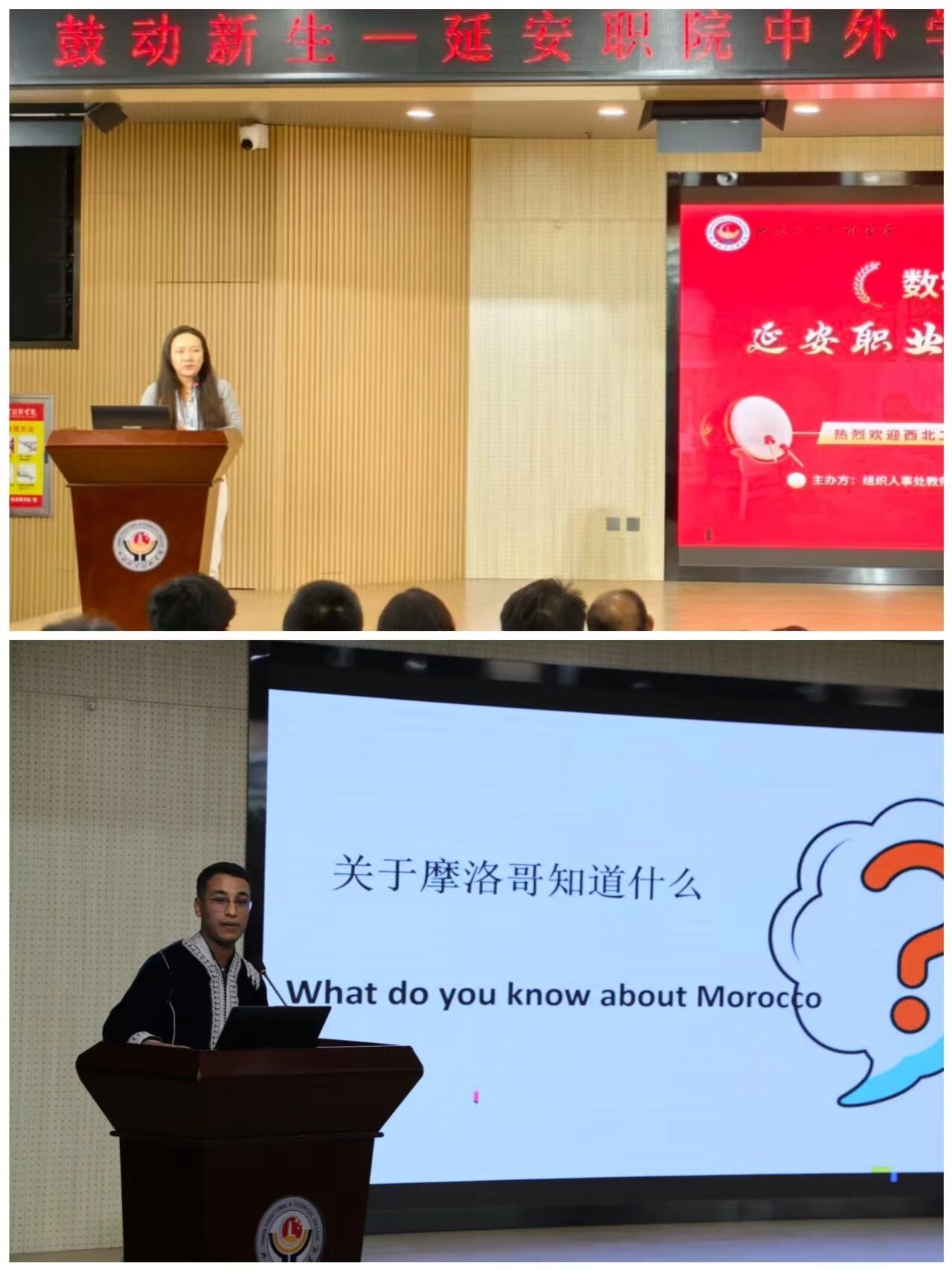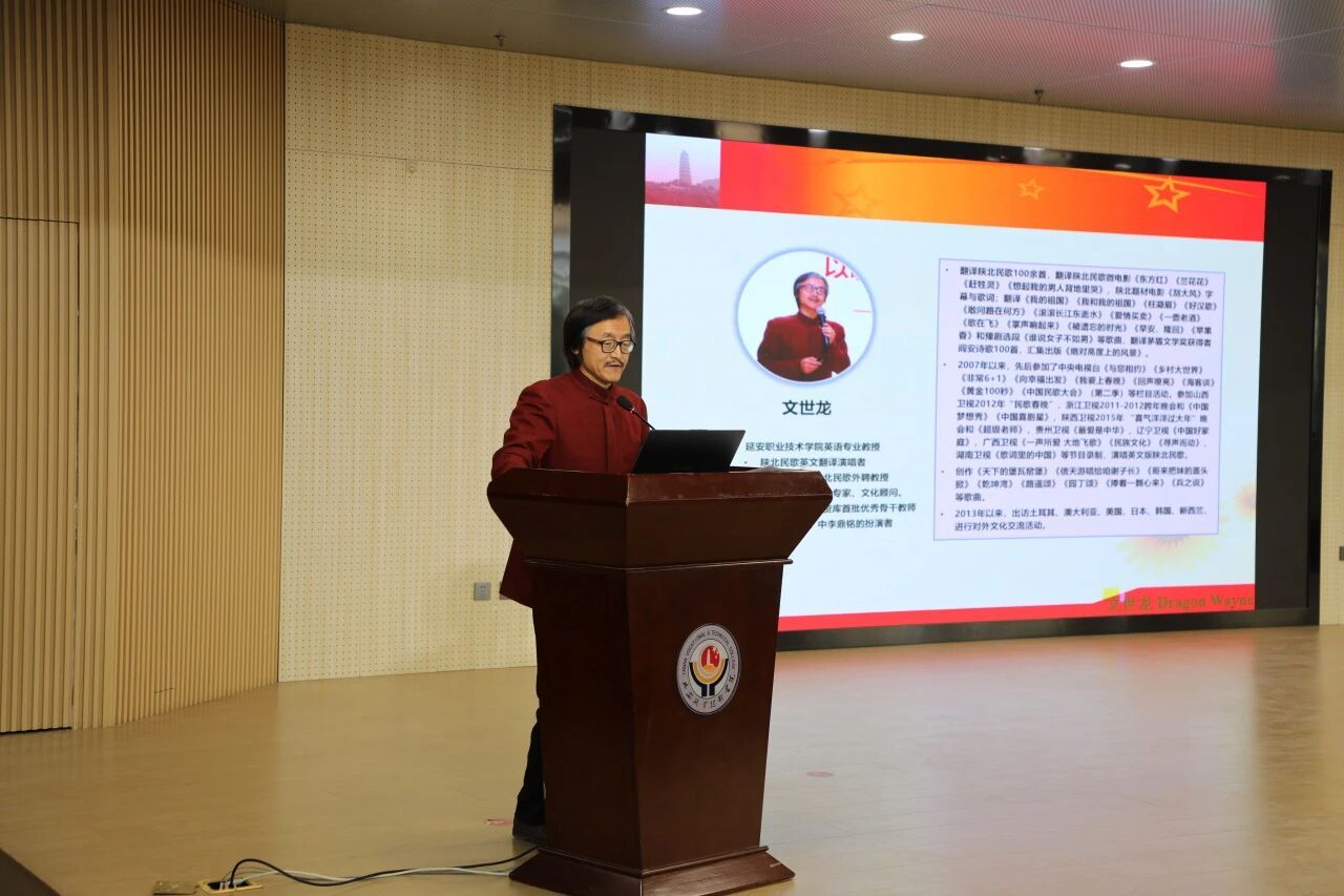我院公共课教学部文世龙老师以中英双语相结合的方式,带来了一场生动的陕北文化展示。从黄土地貌到民风民俗,从高亢的陕北民歌到厚重的革命历史,文老师的精彩演绎让中外学子共同感受到了这片红色热土的独特魅力与精神内涵。