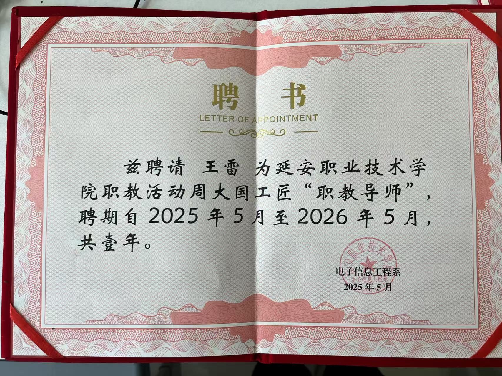 电子信息工程系党总支书记冯丽荣老师为王雷博士颁发“职教导师”聘书。这份聘书不仅是对王雷博士技术实力的认可,更标志着电子信息工程系在“校企协同育人”道路上迈出坚实一步!