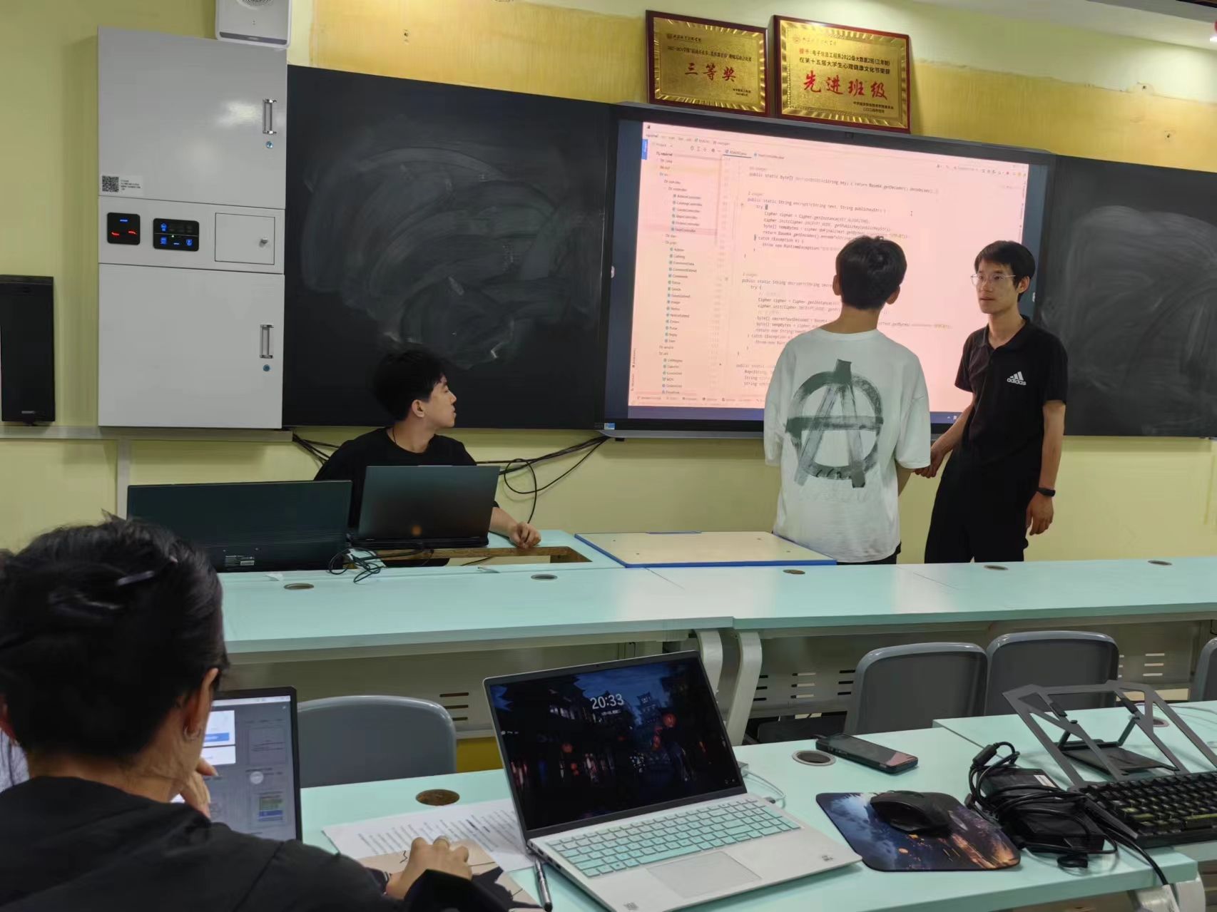 黄朝阳老师线下为学生进行代码编写、检查代码运行、修改代码、为系统进行加密等指导,张庭姣老师为学生进行密码发展史、密码标准等知识科普,指导学生科普宣传路演。