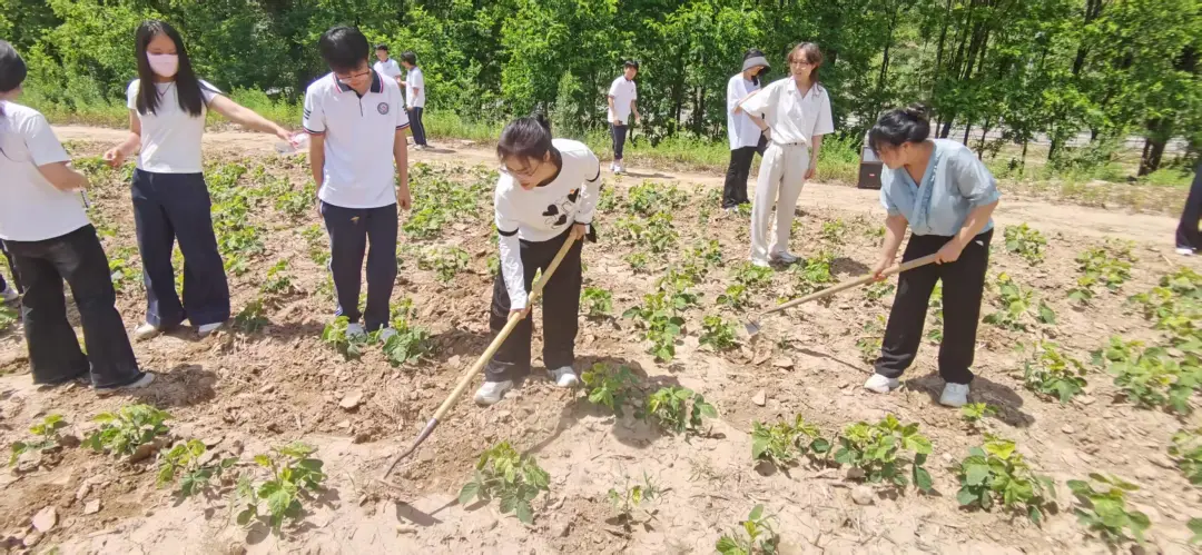 南泥湾的田垄间,同学们初握锄镐,躬身入垄,一场为黄豆青苗锄草的实践课,就此开启。