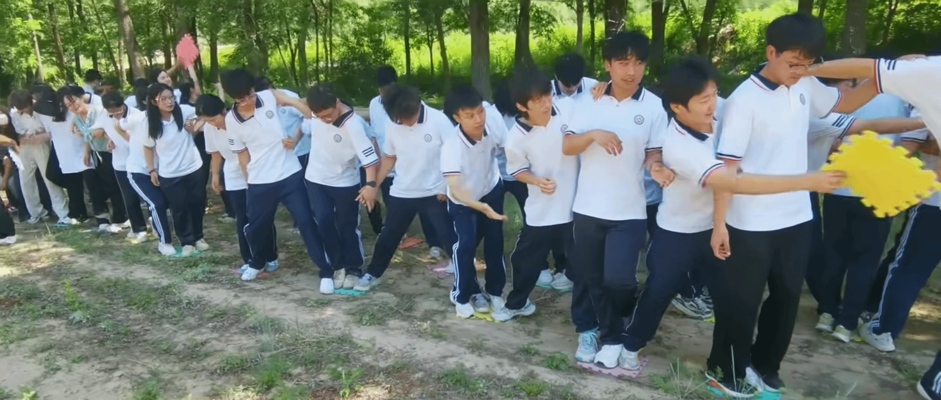 清晨的山谷回荡着激昂口号,在专业拓展教练的带领下,将同学们分成两支队伍,“七一七”团和“七一九”团,当团队组建完成后,团队拓展训练火热开启!