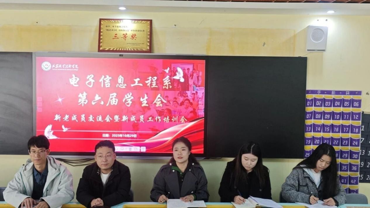 为促进学生会新老成员交流融合,明确工作方向,提升服务能力,10月29日下午3:00,电子信息工程系第六届学生会新老成员交流会暨新成员工作培训会于11#A402 教室顺利召开。系党总支书记冯丽荣老师、达内集团院校总监郭桥坤老师、学生科副科长白凡凡老师,全体辅导员和24、25级学生会成员共同参会。大家齐聚一堂,共话成长,同谋发展。