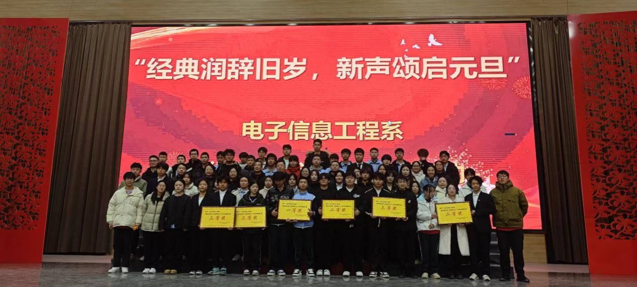 在岁末年初,辞旧迎新之际,电子信息工程系举办的 “经典润辞旧岁,新声颂启元旦”经典诵读活动于 12 月 30 日下午在体育馆圆满开展,为全系师生带来了一场别开生面、意义非凡的文化盛宴,共同迎接新年的到来,奏响了一曲文化传承与团结奋进的华丽乐章。